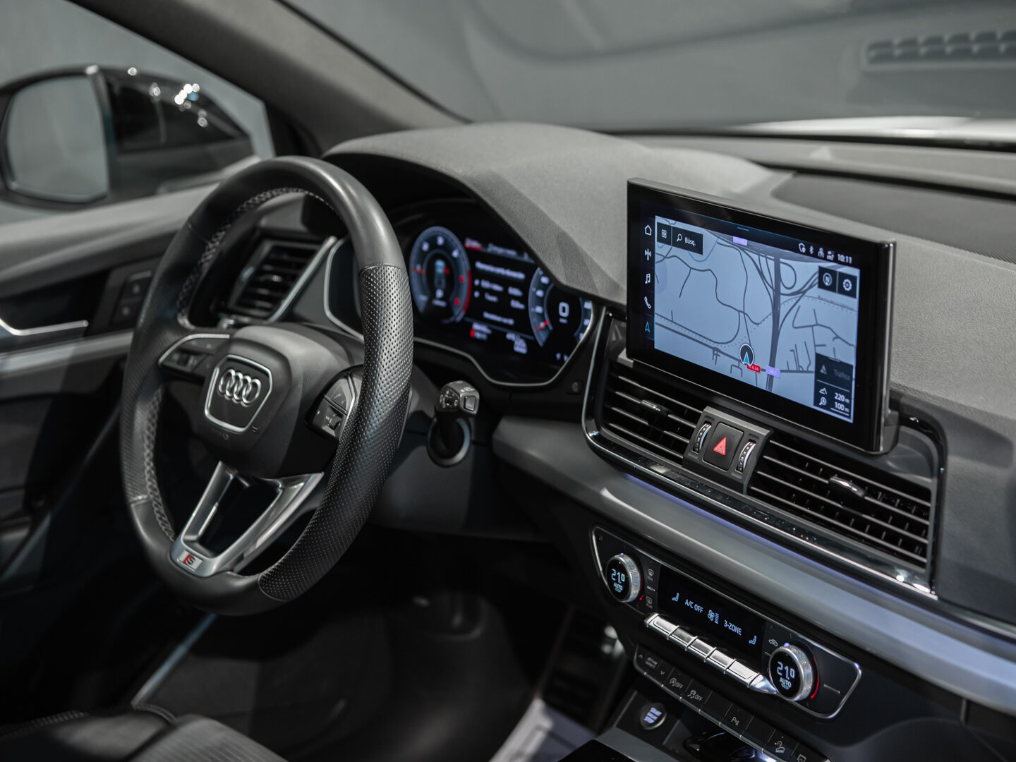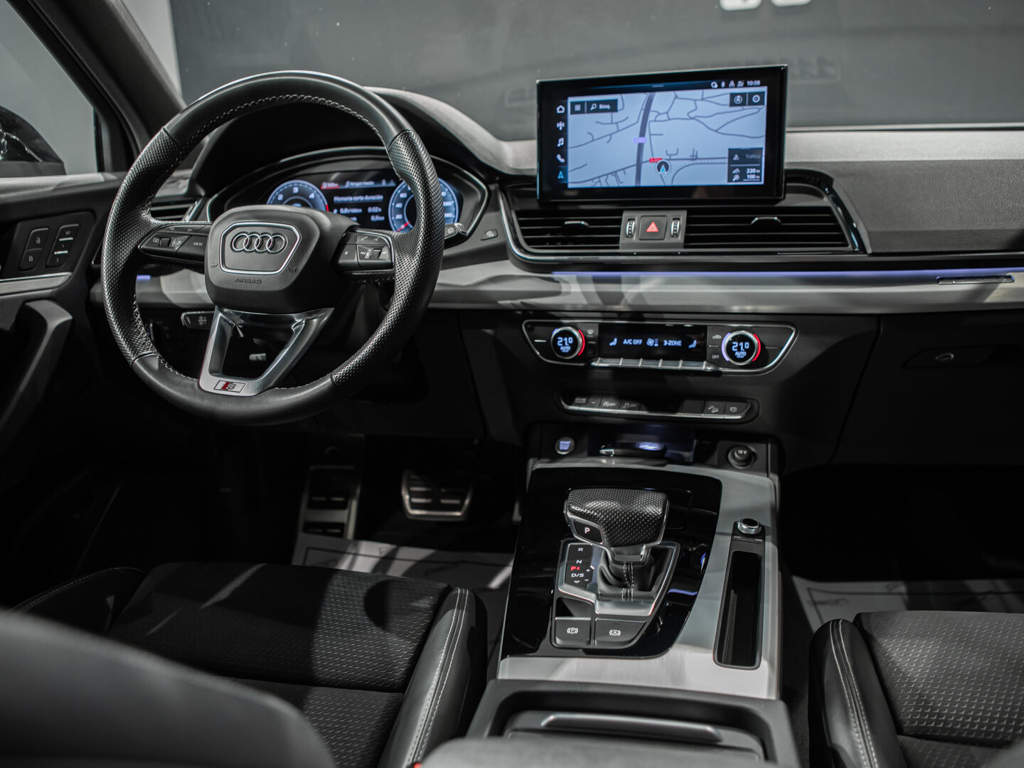 — Vehículo nacional con historial completo de mantenimientos en servicio oficial — Fecha 1ª matriculación 12/2022 — Acabado Black Line, cambio automático S-Tronic, paquete deportivo S-Line, techo panorámico de cristal, Audi Virtual Cockpit, llantas aluminio 20” S-Line, banqueta trasera Plus, llave confort Advance Key, asientos delanteros deportivos con función masaje, asientos delanteros regulables eléctricos con memoria conductor, faros principales con tecnología LED, asistente conductor ángulo muerto y cambio de carril, climatizador automático 3 zonas, paquete iluminación Plus, sensores de aparcamiento delanteros y traseros con cámara, asistente señales de tráfico, apertura y cierre eléctrico portón trasero, espejos exteriores abatibles eléctricos y térmicos, listones entrada retroiluminados, control de velocidad, Audi Drive Select, volante deportivo multifunción con levas de cambio, sensor de luces y lluvia, etc, etc.