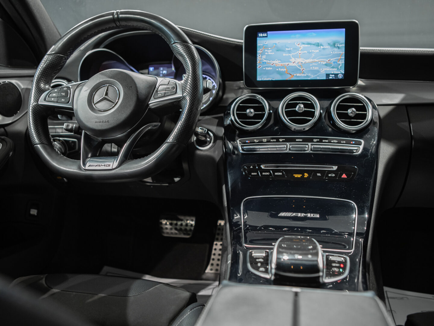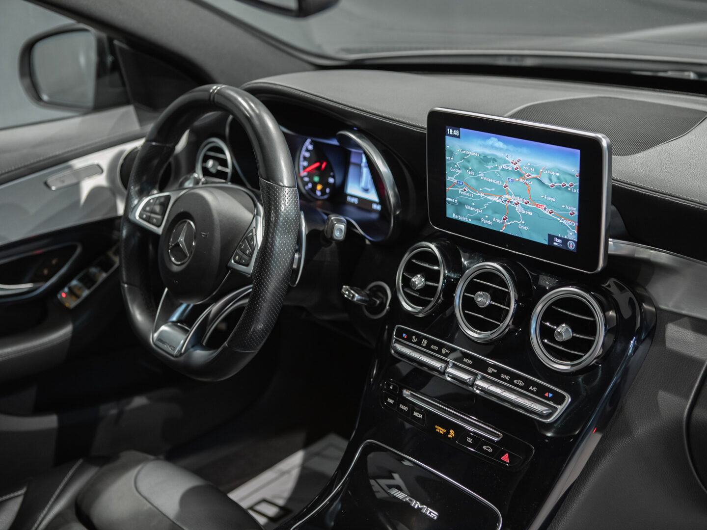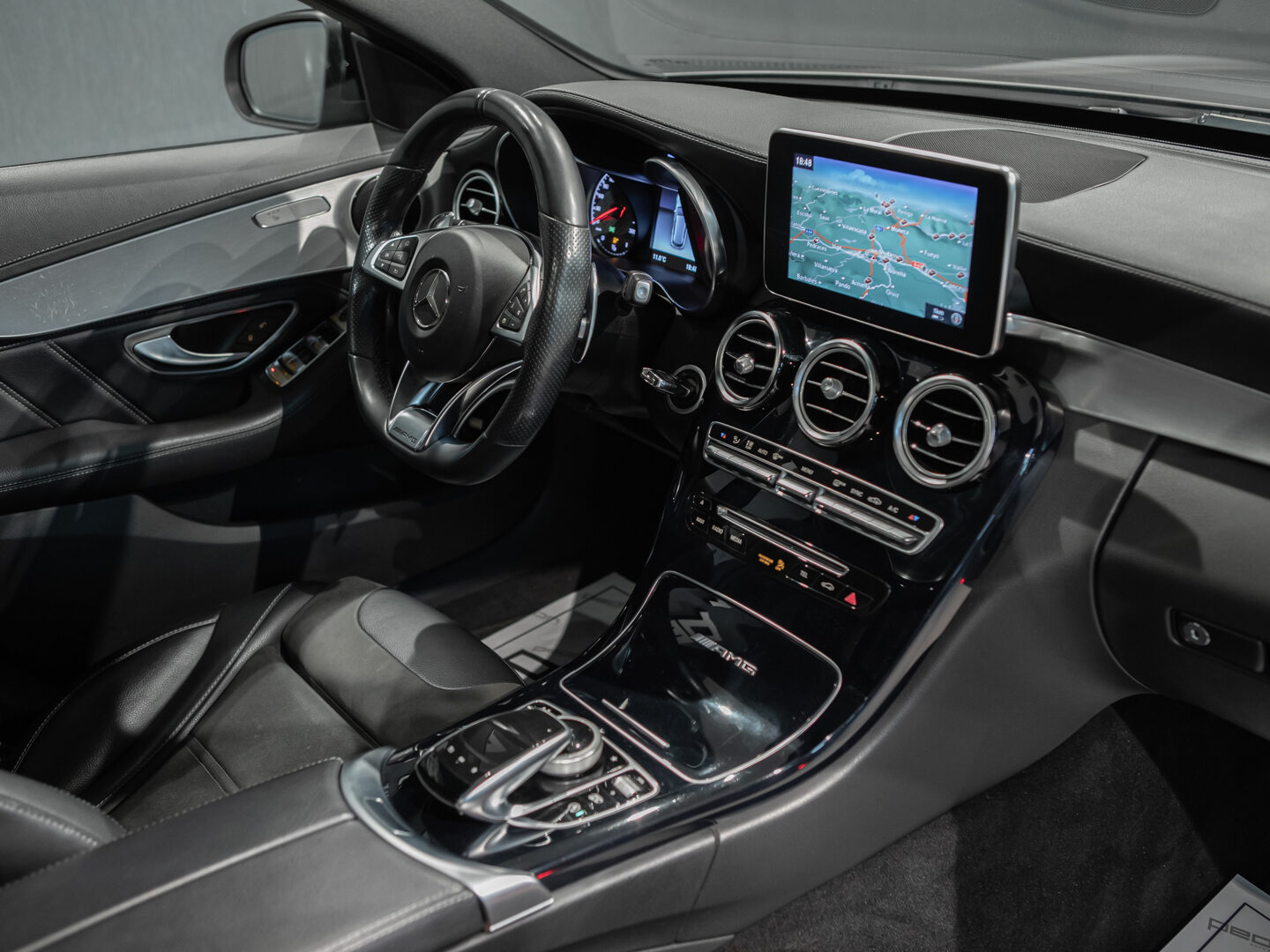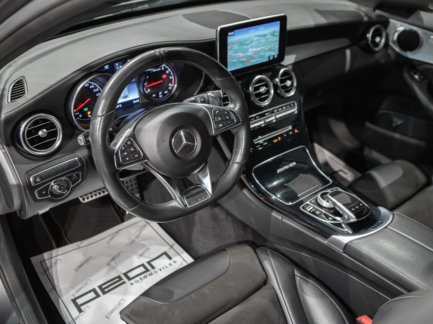 — Vehículo con historial completo de mantenimientos — Cambio automático 7G-Tronic, techo panorámico de cristal, faros principales con tecnología LED, asistente luz de carretera automática, sistema de navegación COMAND online, paquete iluminación exterior, paquete interior negro brillo, control y limitador de velocidad, asientos delanteros deportivos y calefactados, volante Performance multifunción con levas de cambio, sensores aparcamiento delanteros y traseros, listones de entrada iluminados, escape deportivo AMG Performance, espejos abatibles eléctricos, portón trasero eléctrico, cristales traseros tintados, llantas aluminio 19” AMG, sensor luz y lluvia, selección modos conducción, climatizador automático bizona, etc, etc.