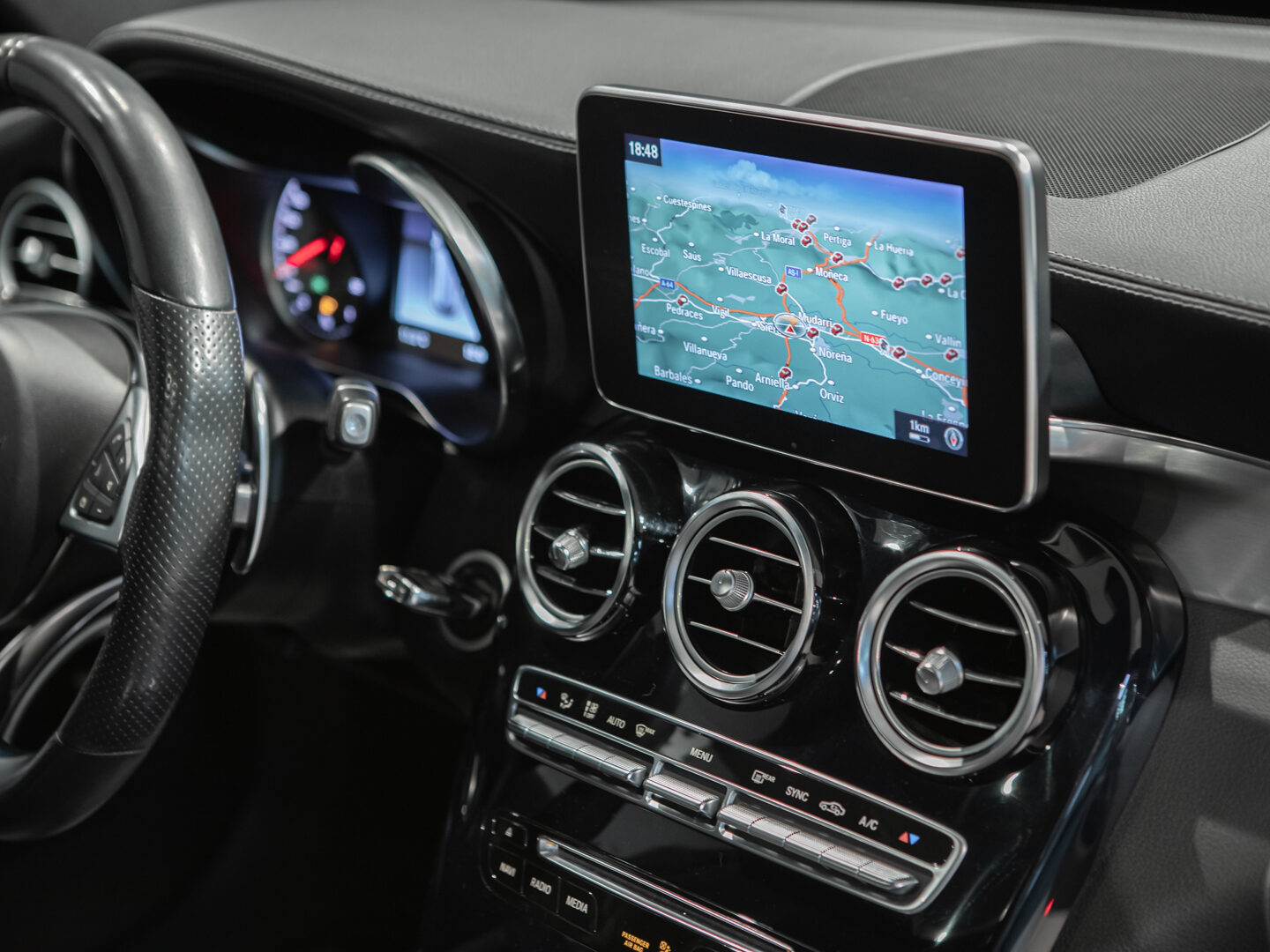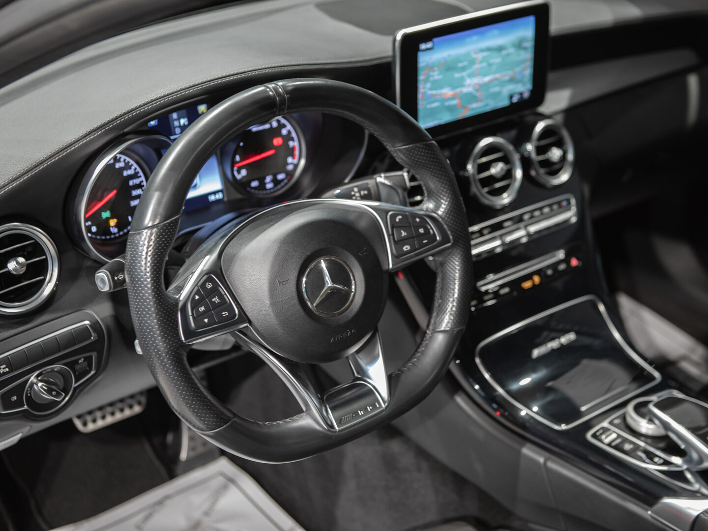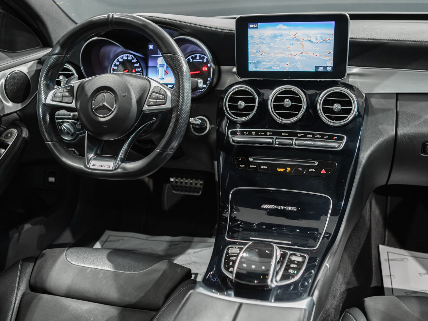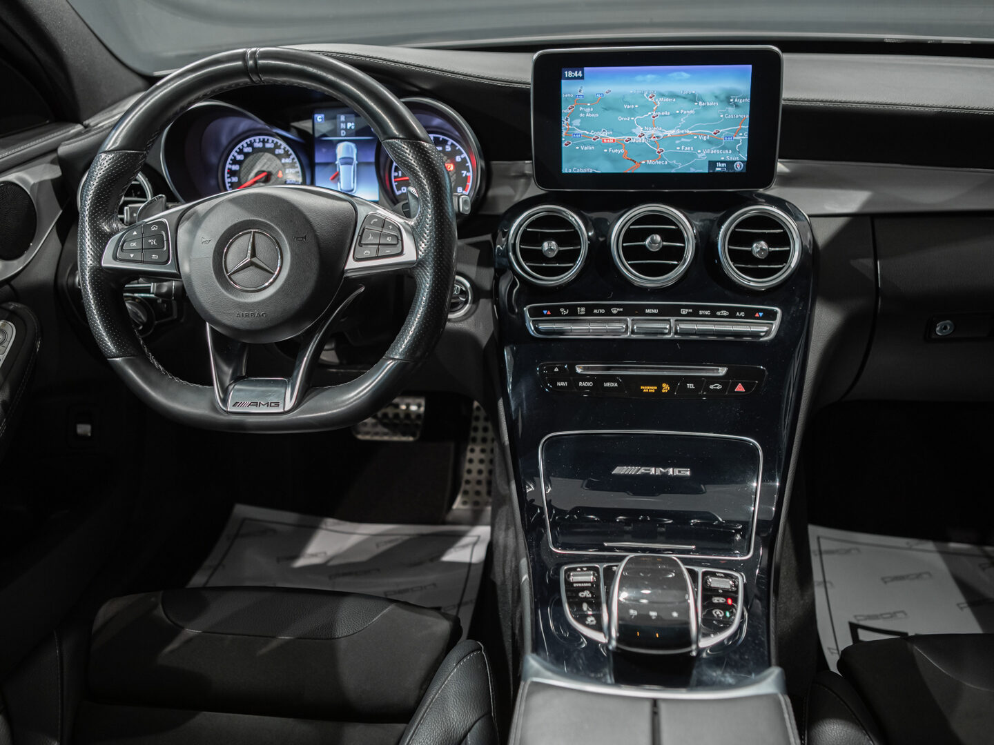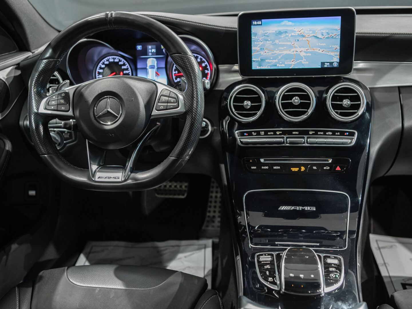 — Vehículo con historial completo de mantenimientos — Cambio automático 7G-Tronic, techo panorámico de cristal, faros principales con tecnología LED, asistente luz de carretera automática, sistema de navegación COMAND online, paquete iluminación exterior, paquete interior negro brillo, control y limitador de velocidad, asientos delanteros deportivos y calefactados, volante Performance multifunción con levas de cambio, sensores aparcamiento delanteros y traseros, listones de entrada iluminados, escape deportivo AMG Performance, espejos abatibles eléctricos, portón trasero eléctrico, cristales traseros tintados, llantas aluminio 19” AMG, sensor luz y lluvia, selección modos conducción, climatizador automático bizona, etc, etc.
